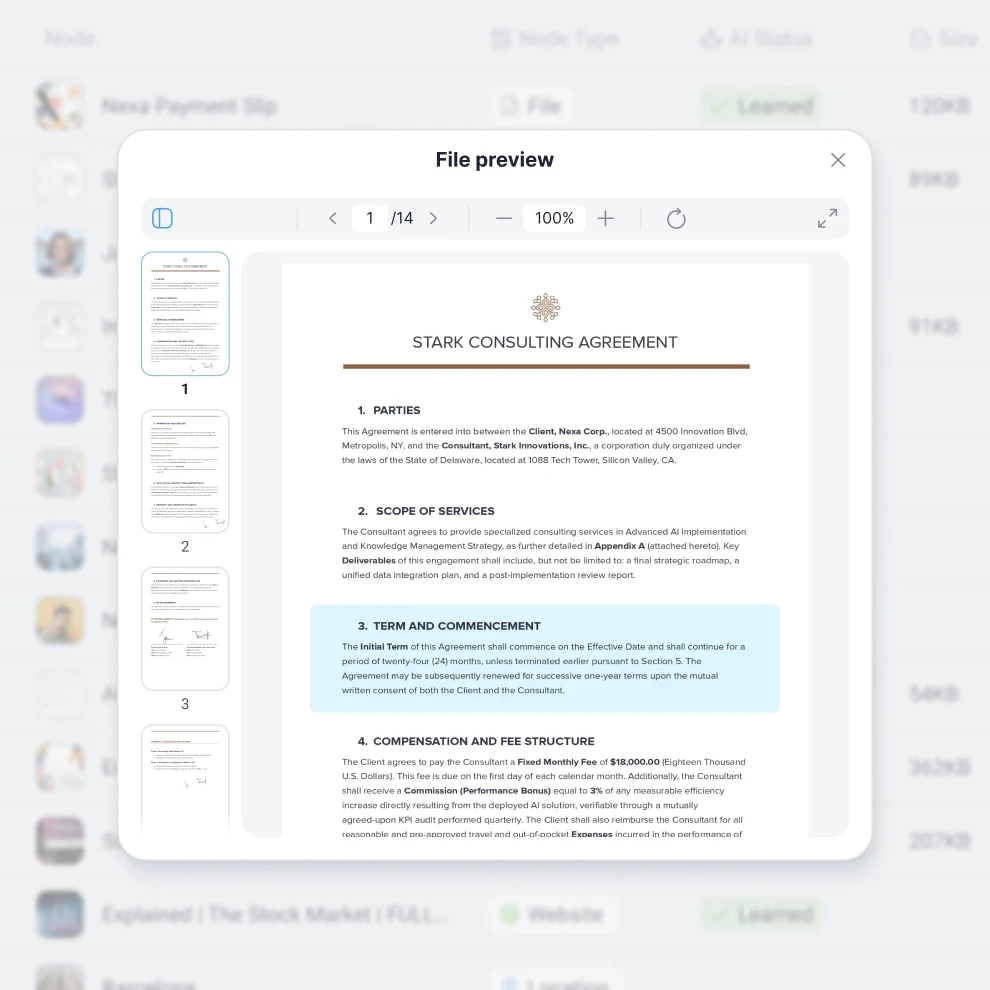 Reshape corporate knowledge into a seamless and efficient process. Save +75% efforts with OCR in images, audio transcription and relationship recommendations powered by AI.