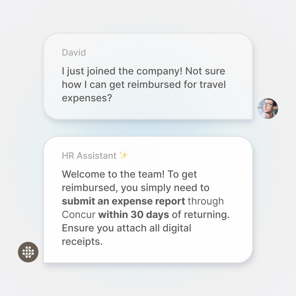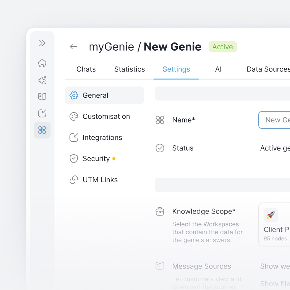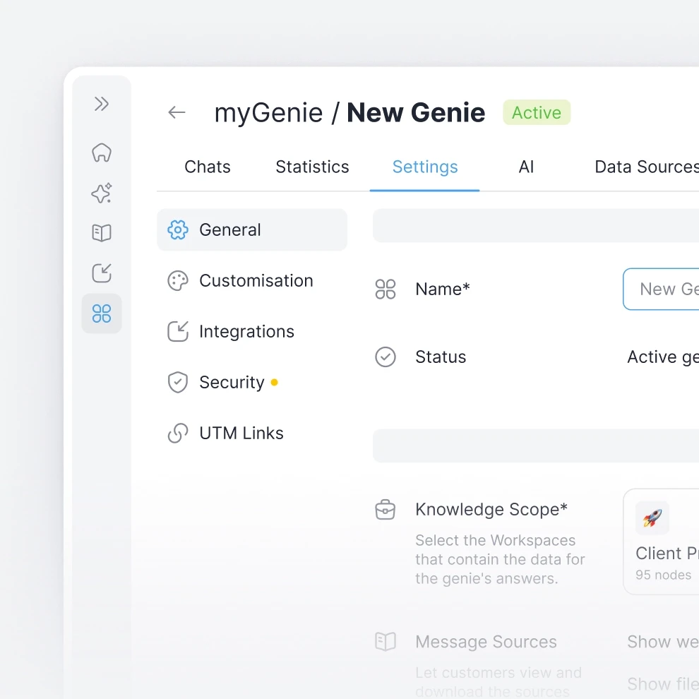 Extend your knowledge base directly to your clients and partners. Deploy customisable, secure Genies that provide instant, accurate and source-backed answers 24/7 without needing human intervention.